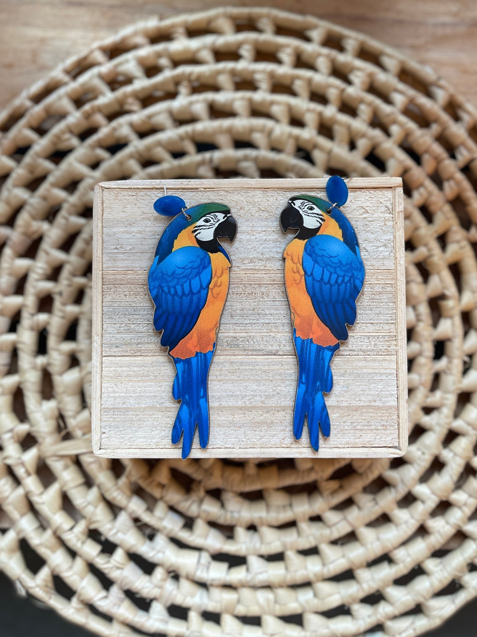 Inspirado nas cores vibrantes da Amazônia, o Brinco Arara é produzido em MDF leve e resistente, com corte preciso e pintura artesanal que realça cada detalhe da ave.