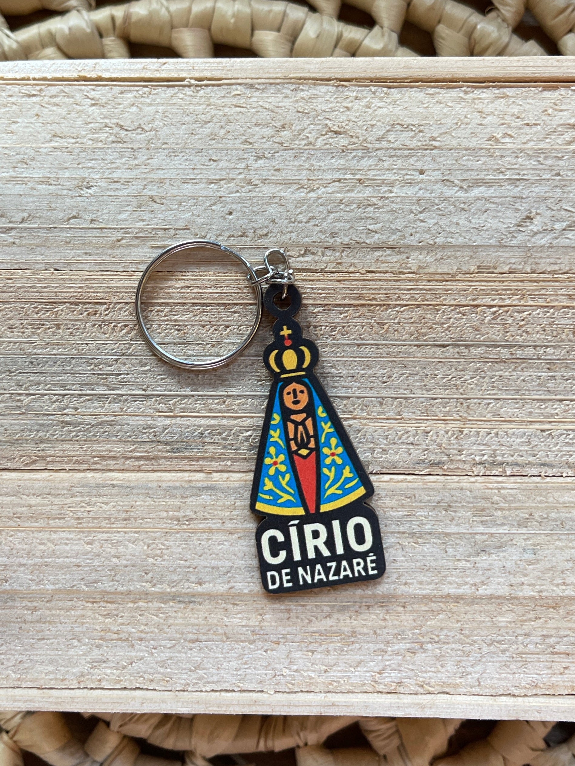 O Chaveiro Nossa Senhora de Nazaré é produzido em MDF leve e resistente, com corte preciso e pintura artesanal que homenageiam a padroeira da Amazônia e o emocionante Círio de Nazaré.
