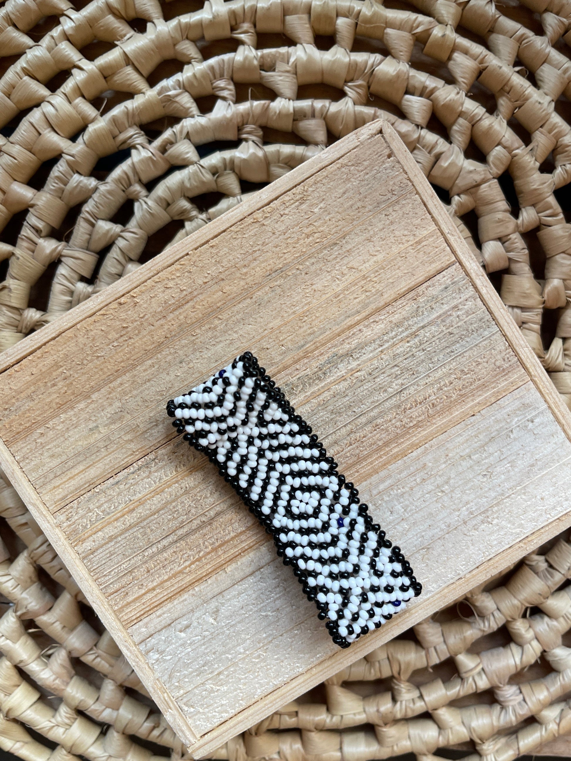 Nesta pulseira, o preto e o branco se encontram para contar histórias. Seus padrões geométricos, inspirados em saberes antigos, representam os caminhos e as conexões da vida. Uma peça minimalista e poderosa, feita à mão com a essência da Amazônia.