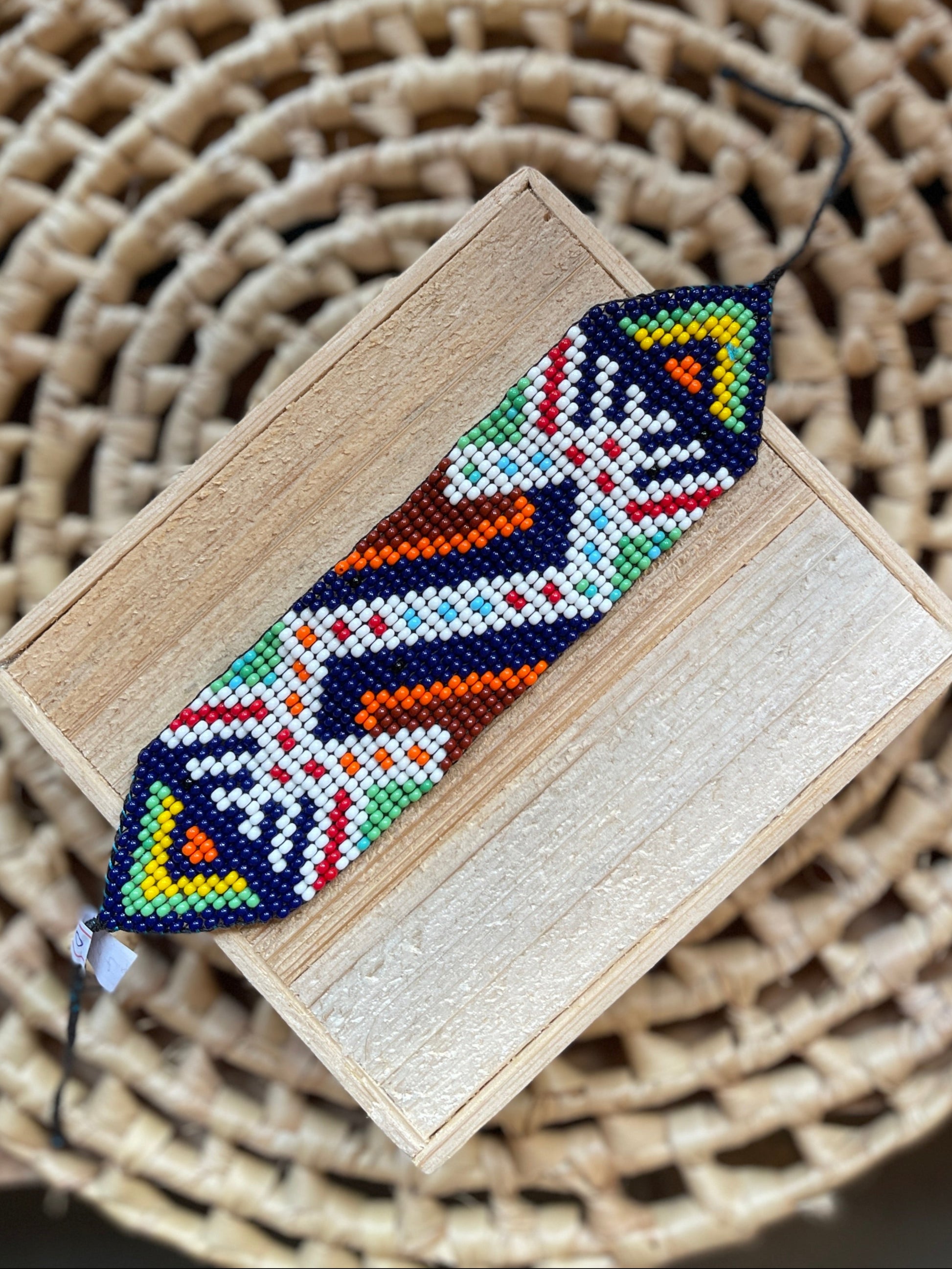Tecida à mão, miçanga por miçanga, esta pulseira carrega a alma da floresta em seus grafismos vibrantes. Uma joia artesanal que celebra a beleza da arte ancestral e a riqueza cultural da Amazônia. Use-a como um amuleto de força e identidade.